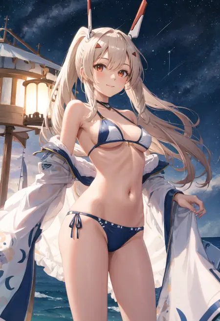トリガー語は ayanami_azurlane であり、削除されたタグは long_hair, ponytail, bangs, headgear, hair_between_eyes, sidelocks, hair_ornament, breasts, blonde_hair, orange_eyes, red_eyes です。あるとき(たとえば髪の色など)キャラクターの特徴が不安定な場合は、これらのタグをプロンプトに追加してください。