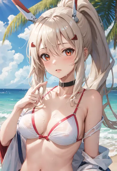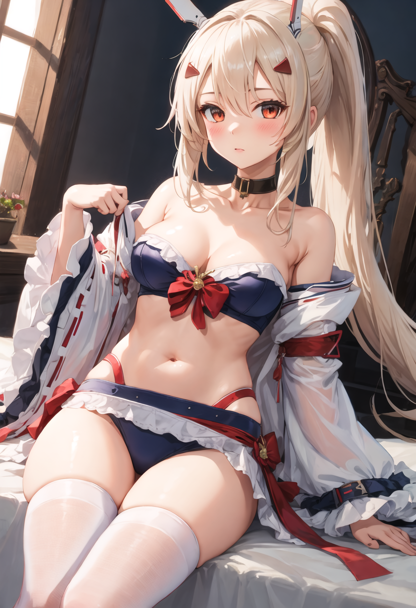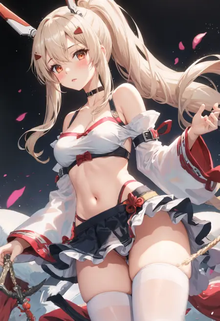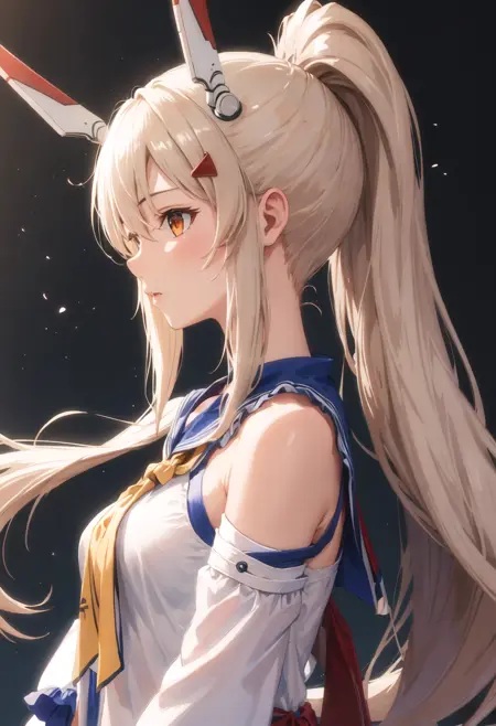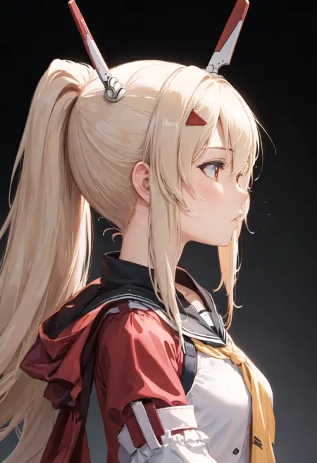 - 削除されたキャラクタータグは以下の通りです:long_hair, ponytail, bangs, headgear, hair_between_eyes, sidelocks, hair_ornament, breasts, blonde_hair, orange_eyes, red_eyes。キャラクターの主要な特徴(たとえば髪の色)が安定しない場合、これらのタグをプロンプトに追加してください。