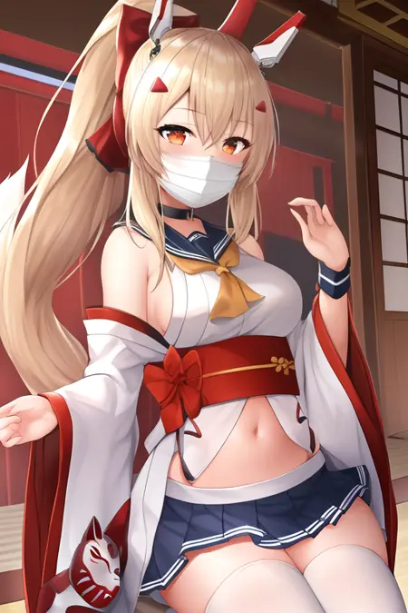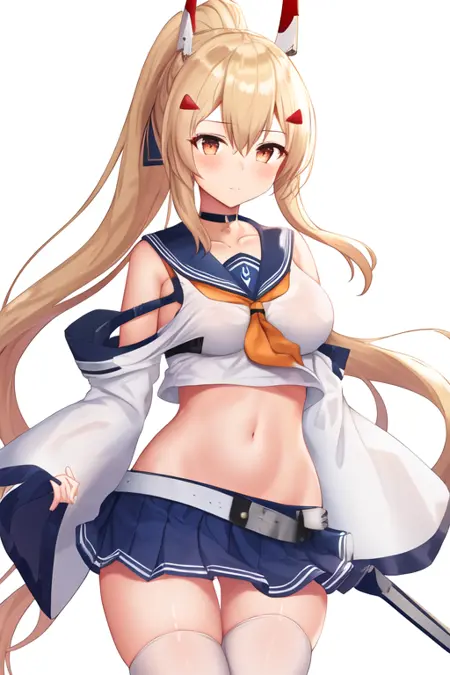 The trigger word is ayanami_azurlane, and the pruned tags are long_hair, ponytail, bangs, headgear, hair_between_eyes, sidelocks, hair_ornament, breasts, blonde_hair, orange_eyes, red_eyes. When some features (e.g. hair color) are not so stable at some times, you can add these them into your prompt.