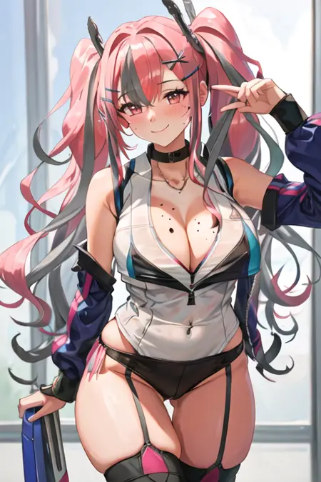 - The pruned character tags are breasts, long_hair, pink_hair, bangs, multicolored_hair, streaked_hair, pink_eyes, large_breasts, twintails, hair_between_eyes, mole, grey_hair, hair_ornament, two-tone_hair, mole_under_eye, sidelocks, mole_on_breast. You can add them into prompts when core features (e.g. hair color) of character is not so stable.