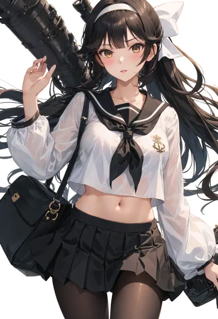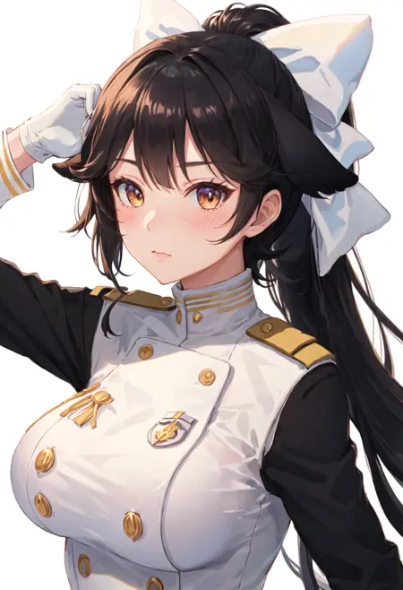 The trigger word is takao_azurlane, and the pruned tags are long_hair, black_hair, breasts, large_breasts, bow, ponytail, hair_bow, white_bow, bangs, very_long_hair, brown_eyes, yellow_eyes. When some features (e.g. hair color) are not so stable at some times, you can add these them into your prompt.