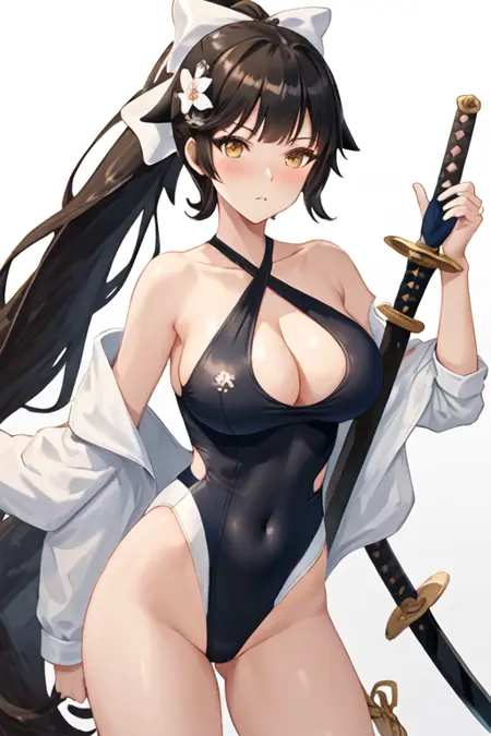 触发词为 takao_azurlane,精简标签为 long_hair, black_hair, breasts, large_breasts, bow, ponytail, hair_bow, white_bow, bangs, very_long_hair, brown_eyes, yellow_eyes。当某些特征(如发色)有时不够稳定时,您可将这些标签加入提示词中。