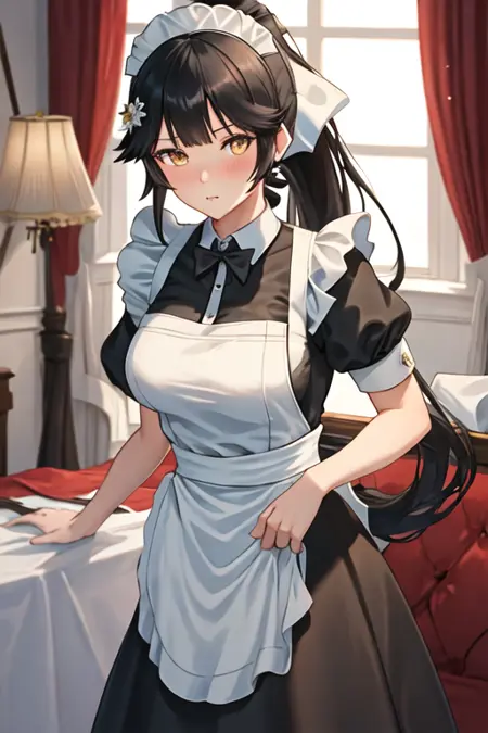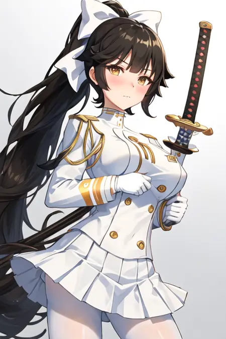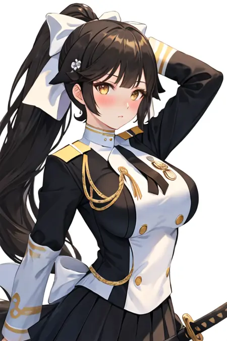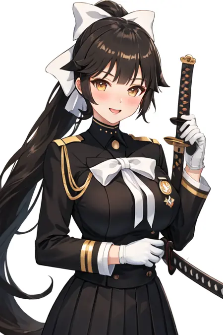 - The pruned character tags are long_hair, black_hair, breasts, large_breasts, bow, ponytail, hair_bow, white_bow, bangs, very_long_hair, brown_eyes, yellow_eyes. You can add them into prompts when core features (e.g. hair color) of character is not so stable.