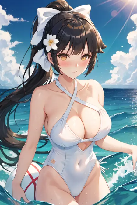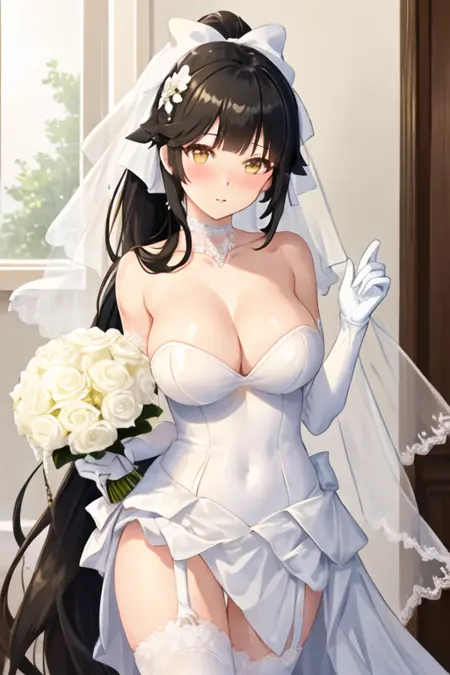 The trigger word is takao_azurlane, and the pruned tags are long_hair, black_hair, breasts, large_breasts, bow, ponytail, hair_bow, white_bow, bangs, very_long_hair, brown_eyes, yellow_eyes. When some features (e.g. hair color) are not so stable at some times, you can add these them into your prompt.