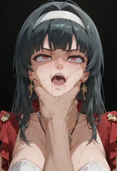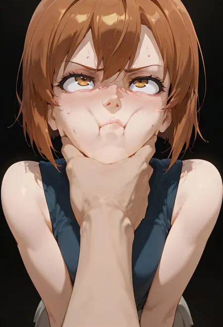 fcgrb, face grab, grabbing another's face, grabbing, pov, pov hand, pout, open mouth, tongue out, cum on tongue, <lora:face_grab_illustrious:0.5>