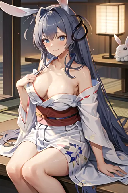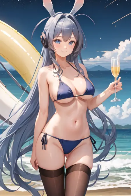 触发词为 new_jersey_azurlane,推荐标签为:best quality, masterpiece, highres, solo, {new_jersey_azurlane:1.15}, long_hair, blue_eyes, blue_hair, breasts, large_breasts, animal_ears, rabbit_ears, smile, fake_animal_ears, very_long_hair, blush, bangs