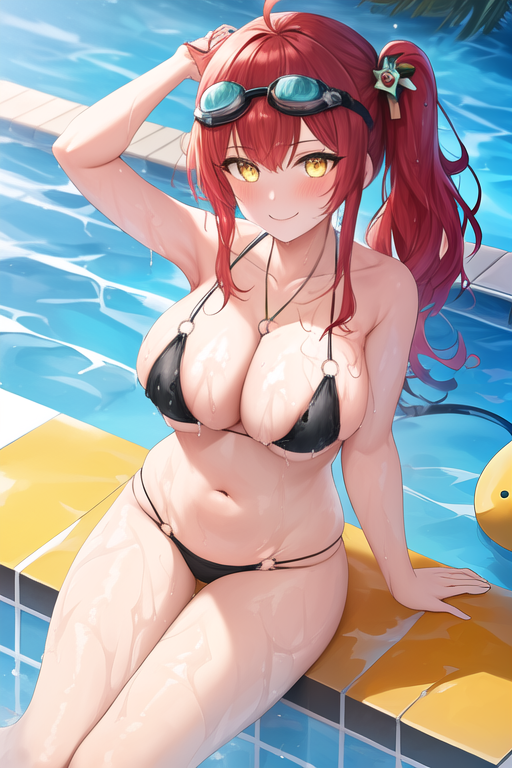 触发词为 zara_azurlane,推荐标签为:best quality, masterpiece, highres, solo, {zara_azurlane:1.15}, red_hair, long_hair, breasts, bangs, blush, side_ponytail, large_breasts, swimsuit, cleavage, black_bikini, collarbone, smile, wet, goggles, yellow_eyes, goggles_on_head, o-ring, o-ring_bikini, hair_ornament, ahoge