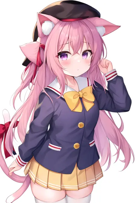 The trigger word is kisaragi_azurlane, and the recommended tags are best quality, masterpiece, highres, solo, {kisaragi_azurlane:1.15}, long_hair, animal_ears, cat_ears, pink_hair, ribbon, blush, pink_eyes, hat, animal_ear_fluff, bow, cat_tail, tail, school_hat, bangs, one_side_up, yellow_headwear, hair_between_eyes, hair_ribbon, purple_eyes, ears_through_headwear, very_long_hair.
