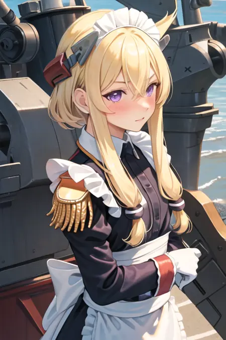 触发词为 warspite_azurlane,推荐标签为:best quality, masterpiece, highres, solo, {warspite_azurlane:1.15}, blonde_hair, long_hair, purple_eyes, bangs, hair_between_eyes, blush, headgear, sidelocks, epaulettes。