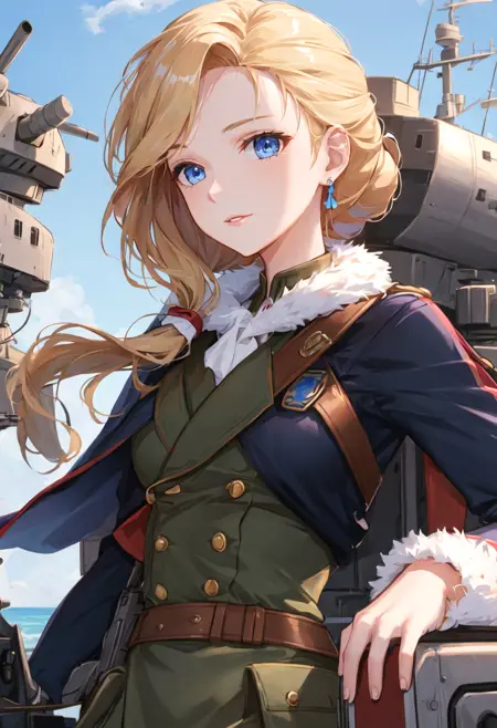 The trigger word is hood_azurlane, and the pruned tags are blonde_hair, long_hair, blue_eyes, breasts, hair_over_shoulder, large_breasts, earrings. When some features (e.g. hair color) are not so stable at some times, you can add these them into your prompt.