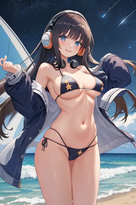 The trigger word is long_island_azurlane, and the recommended tags are best quality, masterpiece, highres, solo, {long_island_azurlane:1.15}, long_hair, blue_eyes, blush, bangs, headphones, brown_hair, breasts, smile, open_mouth, very_long_hair, black_hair.