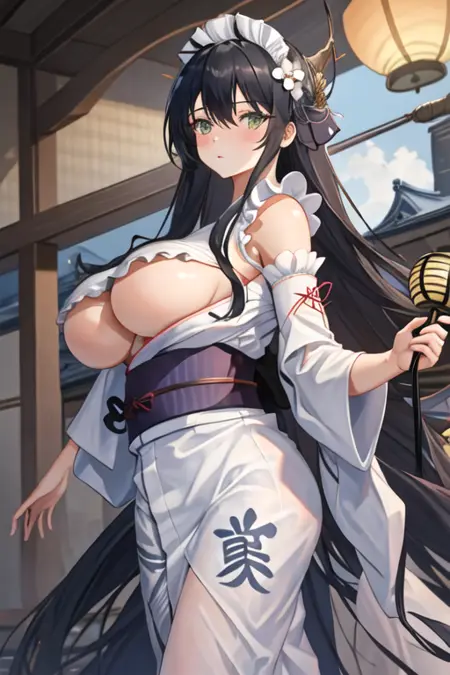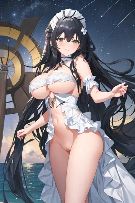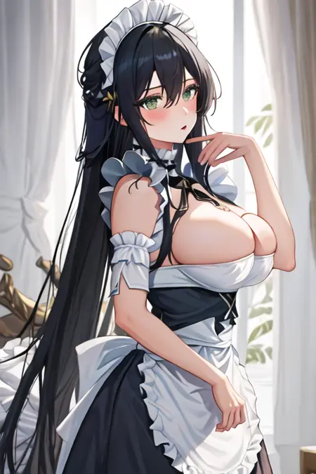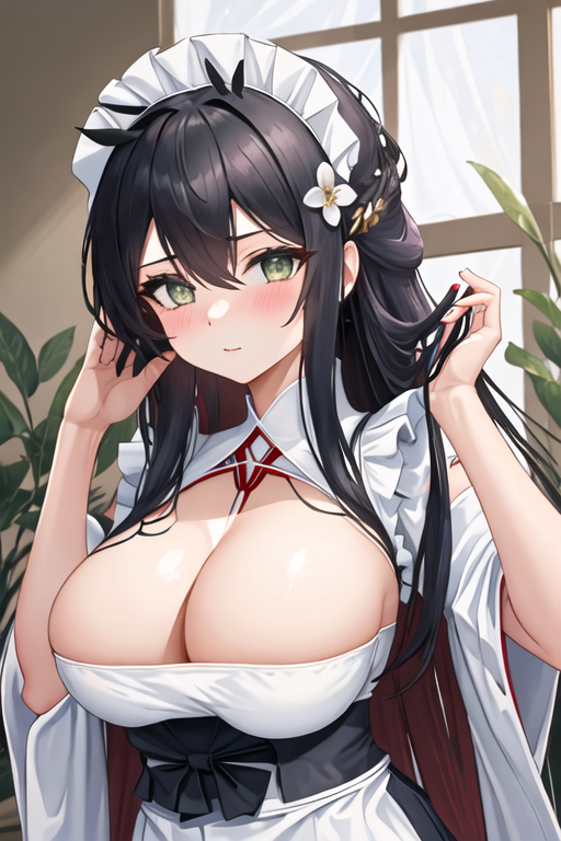트리거 단어는 indomitable_azurlane이며, 추천 태그는 best quality, masterpiece, highres, solo, {indomitable_azurlane:1.15}, long_hair, black_hair, breasts, green_eyes, hair_between_eyes, bangs, large_breasts, blush, very_long_hair, maid_headdress, hair_ornament, hair_flower, huge_breasts입니다.