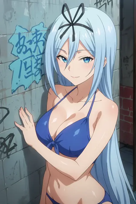 기본: krulci-ei, 1girl, 파란 머리카락, 긴 머리카락, 파란 눈, 리본, 헤어 리본