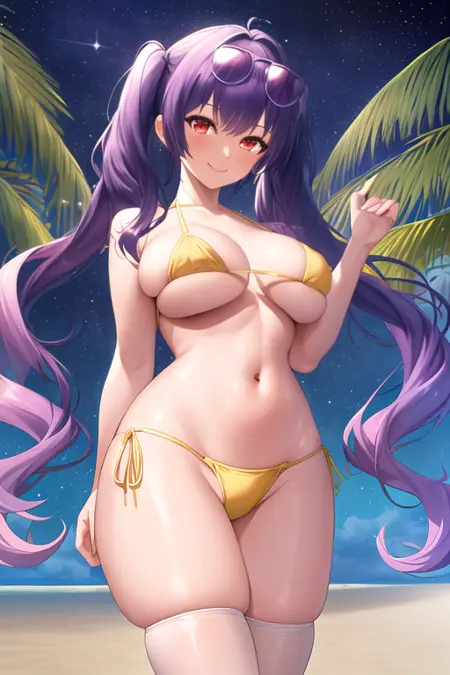 트리거 단어는 pola_azurlane이며, 권장 태그는 best quality, masterpiece, highres, solo, {pola_azurlane:1.15}, long_hair, purple_hair, twintails, breasts, red_eyes, large_breasts, blush, bangs, swimsuit, yellow_bikini, eyewear_on_head, sunglasses, smile입니다.