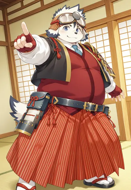Negative prompt: bar censor, censored, mosaic censoring, bad quality, worst quality, worst detail, normal quality, sketch, censor, simple background, goggles on headwear, tachi-e, (obese:0.5), hand on headwear, arm up, hand up, bad_fangs, pelvic curtain, text, (big belly:0.5), holding object, muscular, muscle, obliques, bara, tits, breasts, pectorals, shota, shoulder bag, flat color, bad_mouth, ((solo)), duplicate, clone, holding headwear,