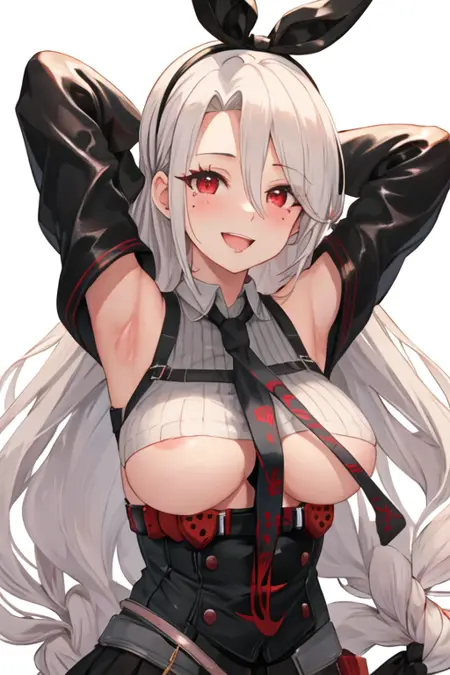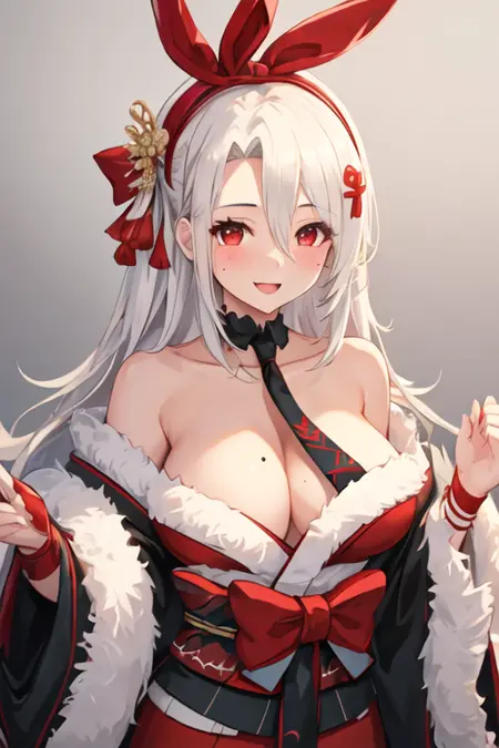 - 已精简的角色标签为:long_hair、breasts、red_eyes、large_breasts、white_hair、very_long_hair、bangs、mole、ribbon、mole_under_eye、hair_ribbon、hairband。当角色的核心特征(如发色)不够稳定时,您可以将这些标签添加到提示词中。
