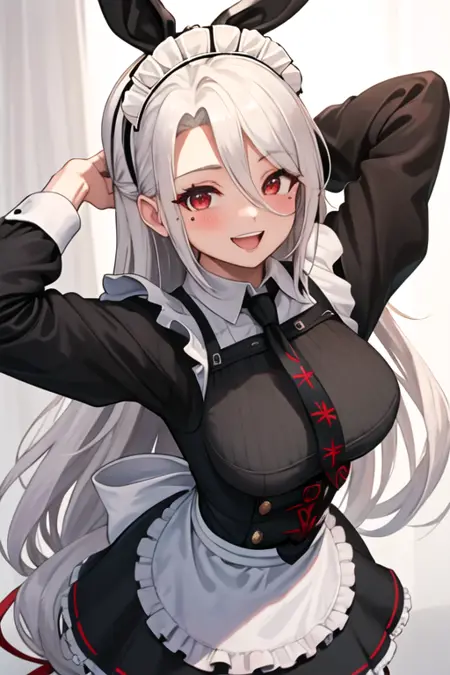 触发词为 prinz_heinrich_azurlane,精简标签为 long_hair, breasts, red_eyes, large_breasts, white_hair, very_long_hair, bangs, mole, ribbon, mole_under_eye, hair_ribbon, hairband。当某些特征(例如发色)有时不够稳定时,您可以将这些标签加入您的提示词中。