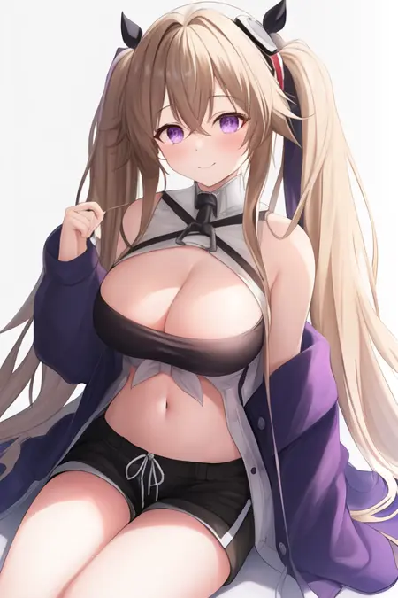 - The pruned character tags are long_hair, breasts, large_breasts, twintails, very_long_hair, bangs, purple_eyes, light_brown_hair, hair_between_eyes, blonde_hair. You can add them into prompts when core features (e.g. hair color) of character is not so stable.