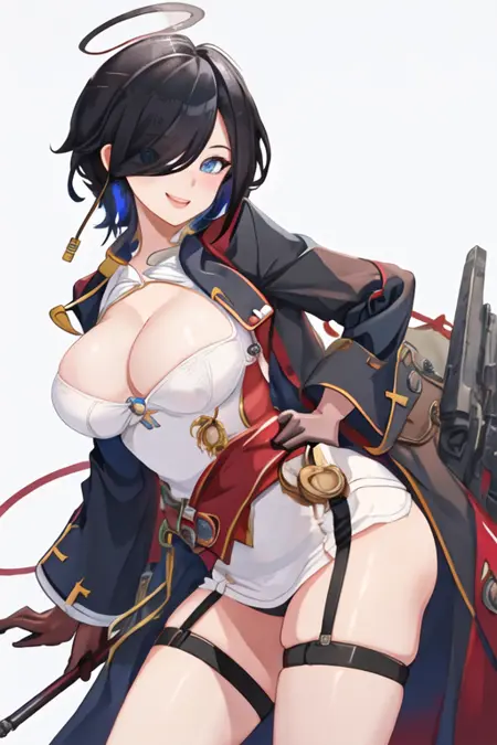 触发词为 ark_royal_azurlane,推荐标签为:best quality, masterpiece, highres, solo, {ark_royal_azurlane:1.15}, blue_eyes, black_hair, short_hair, breasts, large_breasts, cleavage, hair_over_one_eye, smile, bangs