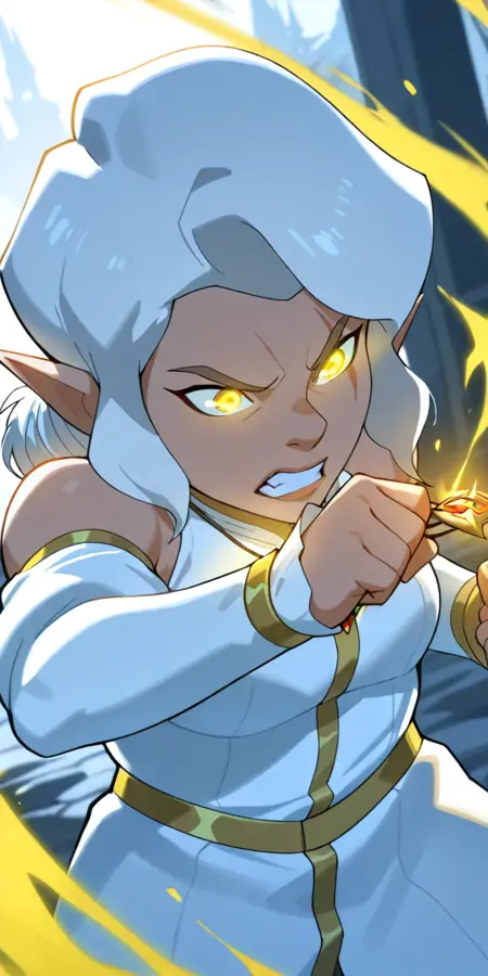 g0lden_eyes, glowing eyes, yellow aura, fighting pose, spell(Delete "