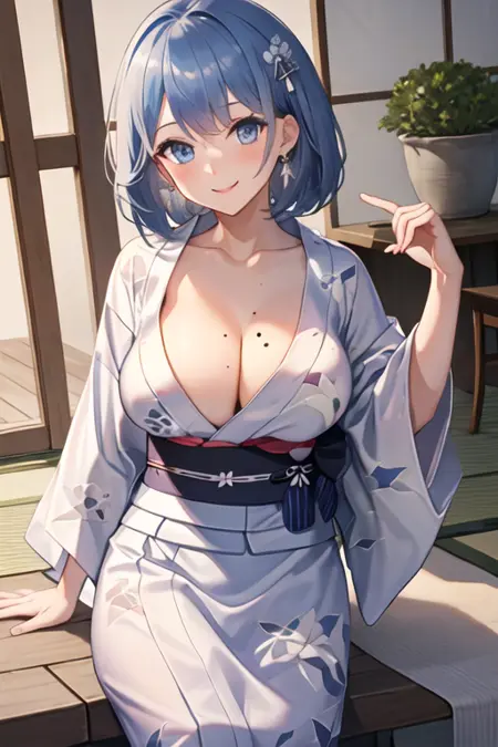触发词为 chapayev_azurlane,推荐标签为:best quality, masterpiece, highres, solo, {chapayev_azurlane:1.15}, blue_hair, short_hair, blue_eyes, breasts, large_breasts, blush, mole, mole_on_breast, bangs, smile, cleavage, hair_ornament。