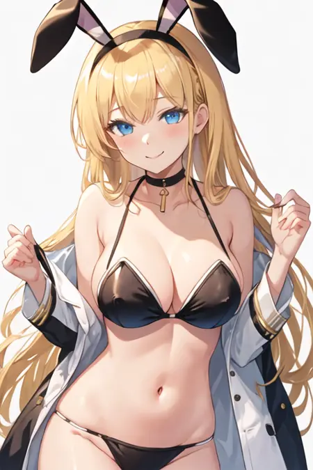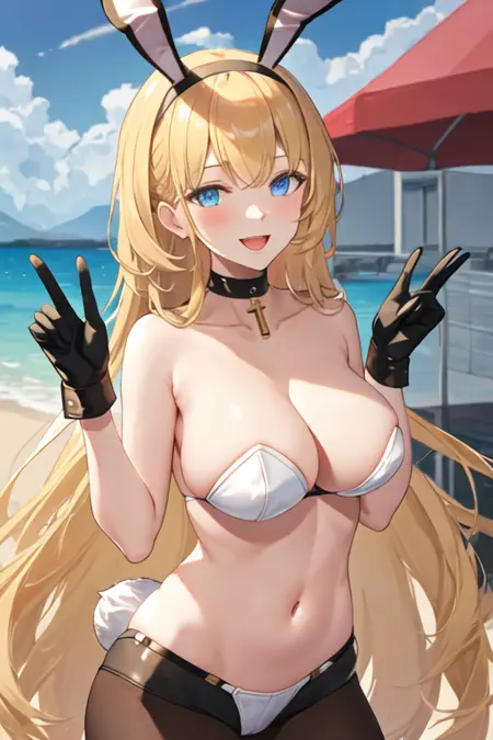 The trigger word is north_carolina_azurlane, and the recommended tags are best quality, masterpiece, highres, solo, {north_carolina_azurlane:1.15}, blonde_hair, long_hair, blue_eyes, breasts, large_breasts, rabbit_ears, animal_ears, fake_animal_ears, blush, cleavage, smile, hairband, bangs.