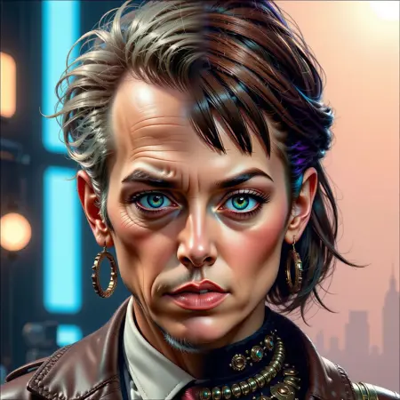 mashUpBlended,一半是老虎脸,另一半是外星人脸,脸部融合,两个人的混合脸,两张不同脸的艺术融合,角色混合概念,双面脸,超清晰对焦,高细节照片