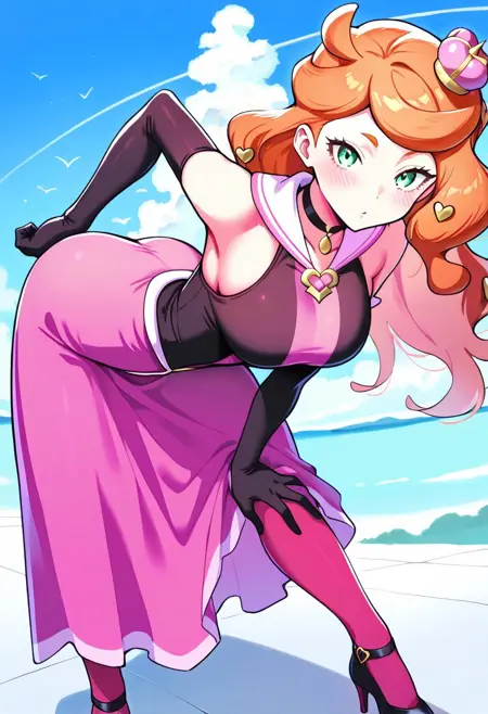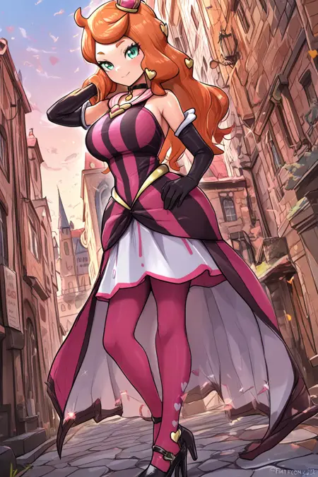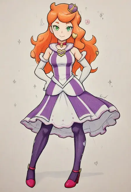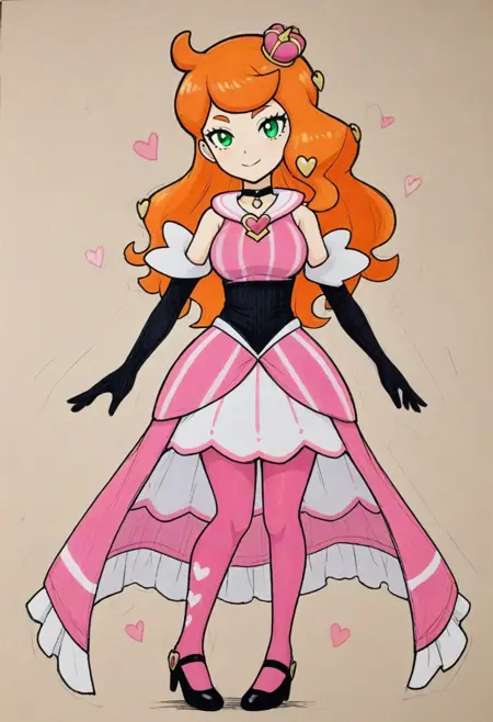 | 학습된 단어 | scsonia, def colors, green eyes, orange hair, long hair, heart hair ornament, pink mini crown, black choker, pink dress, long dress, sleeveless, bare shoulders, elbow gloves, knees, pink pantyhose, high heels, black footwear복사됨! scsonia, ex colors, green eyes, orange hair, long hair, heart hair ornament, purple mini crown, red choker, purple dress, long dress, sleeveless, bare shoulders, elbow gloves, white gloves, knees, purple pantyhose, high heels, pink footwear복사됨! |