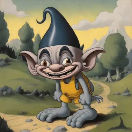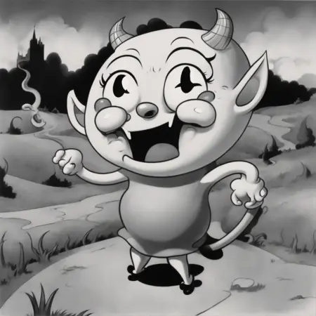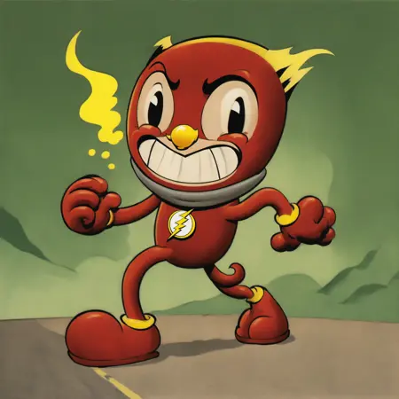 此版本的 LoRa 使用了《Cuphead》动画系列中独特的 Rubberhose 艺术风格进行训练。