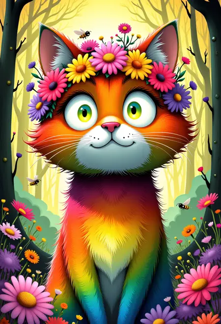 Step into a world where colors burst, lines dance, and reality bends just a little off-kilter! The Wacky Scratch LoRA transforms images into a vibrant, dynamic drawing style with a unique flat, 2D and 2.5D aesthetic. Using the magic keyword 'WackScratchDaal', this LoRA brings an explosion of whimsy, weirdness, and wonder to your creations. Like the Cheshire Cat once said, "I'm not crazy, my reality is just different than yours." If you're looking for a touch of the surreal, a splash of fun, or a full-blown imaginative escape, this LoRA is your new best friend.