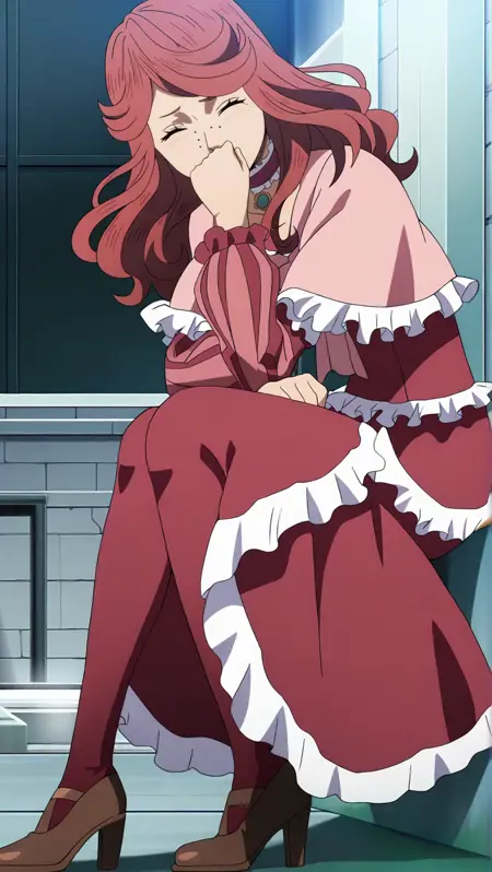 date outfit, dress, frills, choker, capelet, red dress, shoes, brown shoes, heels, pantyhose, red pantyhose