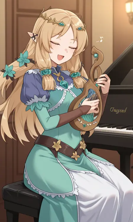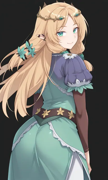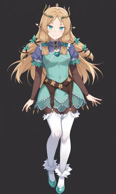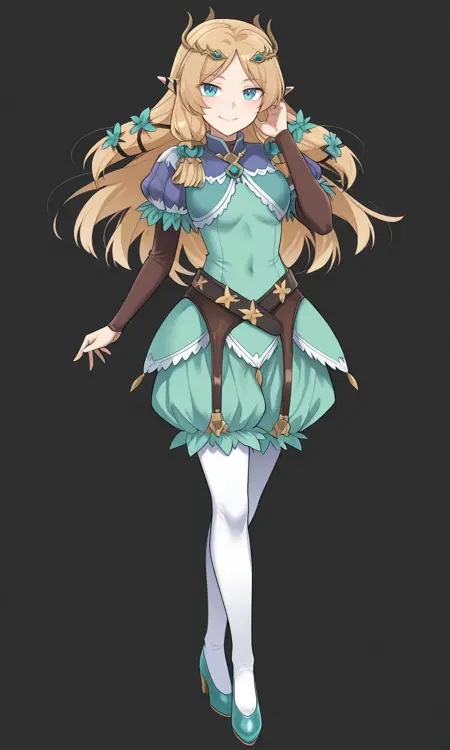 Margaret, elf, blond hair, crown, pantyhose, fur-trimmed legwear, puffy shorts,