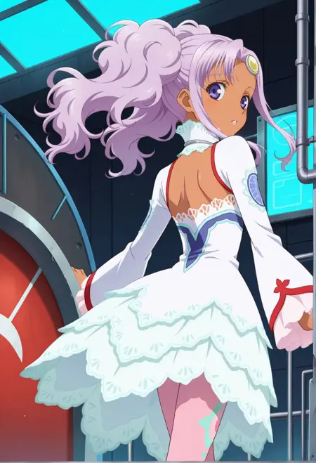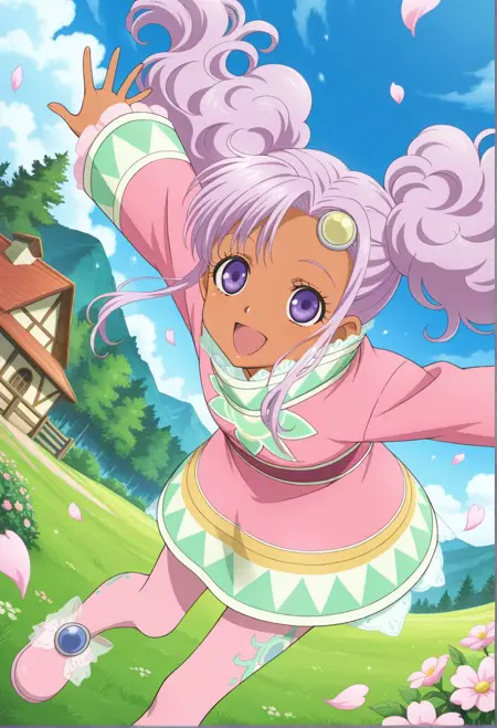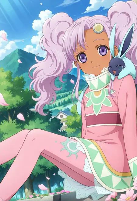 meredyBase, meredy \(tales\), twintails, purple hair, wavy hair, purple eyes, dark skin, sidelocks, long hair,