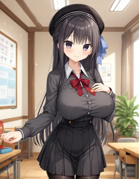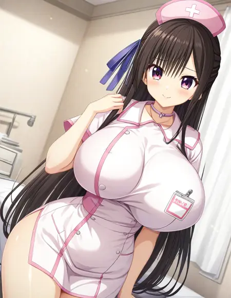 권장 프롬프트: Yaya Rindou, large breasts, purple eyes, slant eyes, black hair, long hair, hair ornament,
