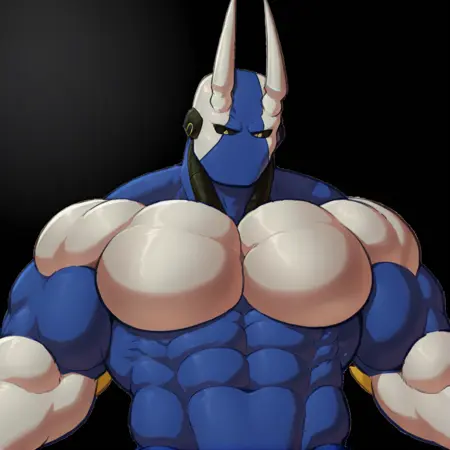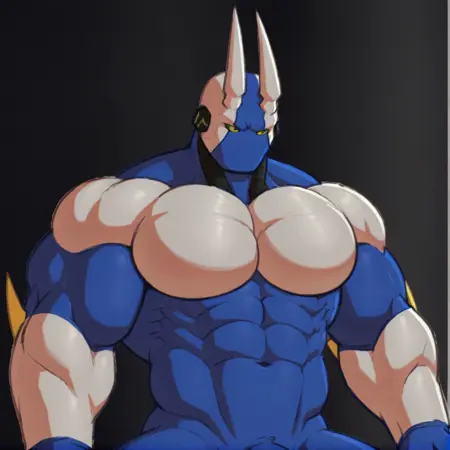 finnter, bara, muscular, pecs, horns, yellow eyes, solo, mouthless, penis, balls, earrings