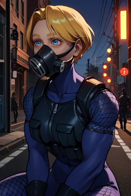 DDArmor, armor,gas mask,fingerless gloves,bodysuit,vest,boots, fishnets,
