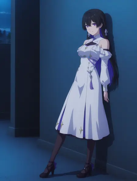 | 训练词汇 | tinasha_unnamedmemory, 1girl, long hair, purple eyes, bangs, black hair, colored inner hair, blue hair, medium breasts, hair between eyes,已复制! whiteoutfit1, dress, white dress, pantyhose, black footwear, high heels, long sleeves, bare shoulders, ribbon,已复制! blackoutfit1, black dress, black gloves, fingerless gloves, thighhighs, purple heels, sleeveless dress, china dress, side slit,已复制! |