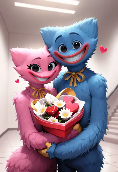 📝 Kissy Missy 是由 Playtime Co. 于 1985 年创作的游戏《Poppy Playtime》中的角色,比 Huggy Wuggy 晚一年问世。她拥有高挑纤细的身体,四肢覆盖着粉色绒毛,黄色的手和脚,大眼睛配长长的睫毛,脖子上系着蓝色蝴蝶结。与其他敌对玩具不同,Kissy Missy 表现出善意,在游戏第二章中为主角打开了一道门。