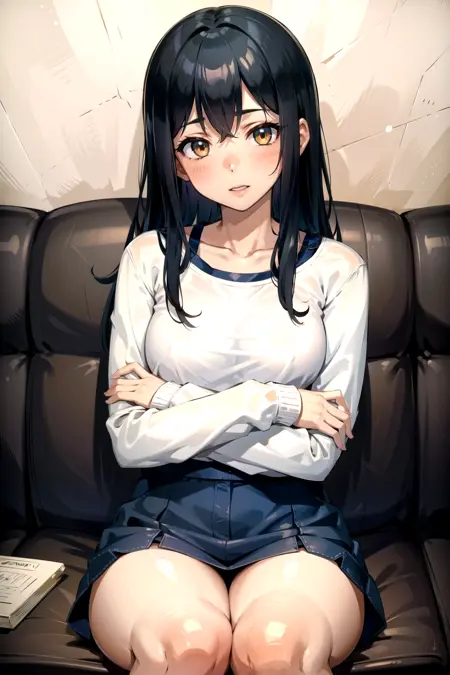 사용하는 모델이나 LoRA에 따라 프롬프트에 “소파에 앉아 있다”는 표현을 명시해야 할 수 있습니다.