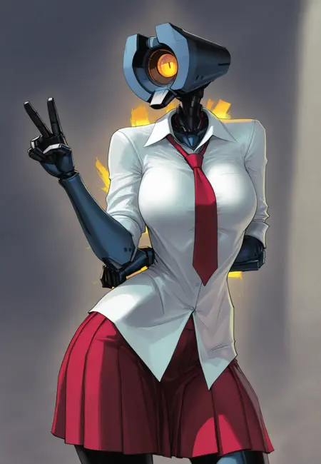 For appearance add: "v1 \(ultrakill\), male focus, (yellow marks on breasts:0.6), full body, single eye"