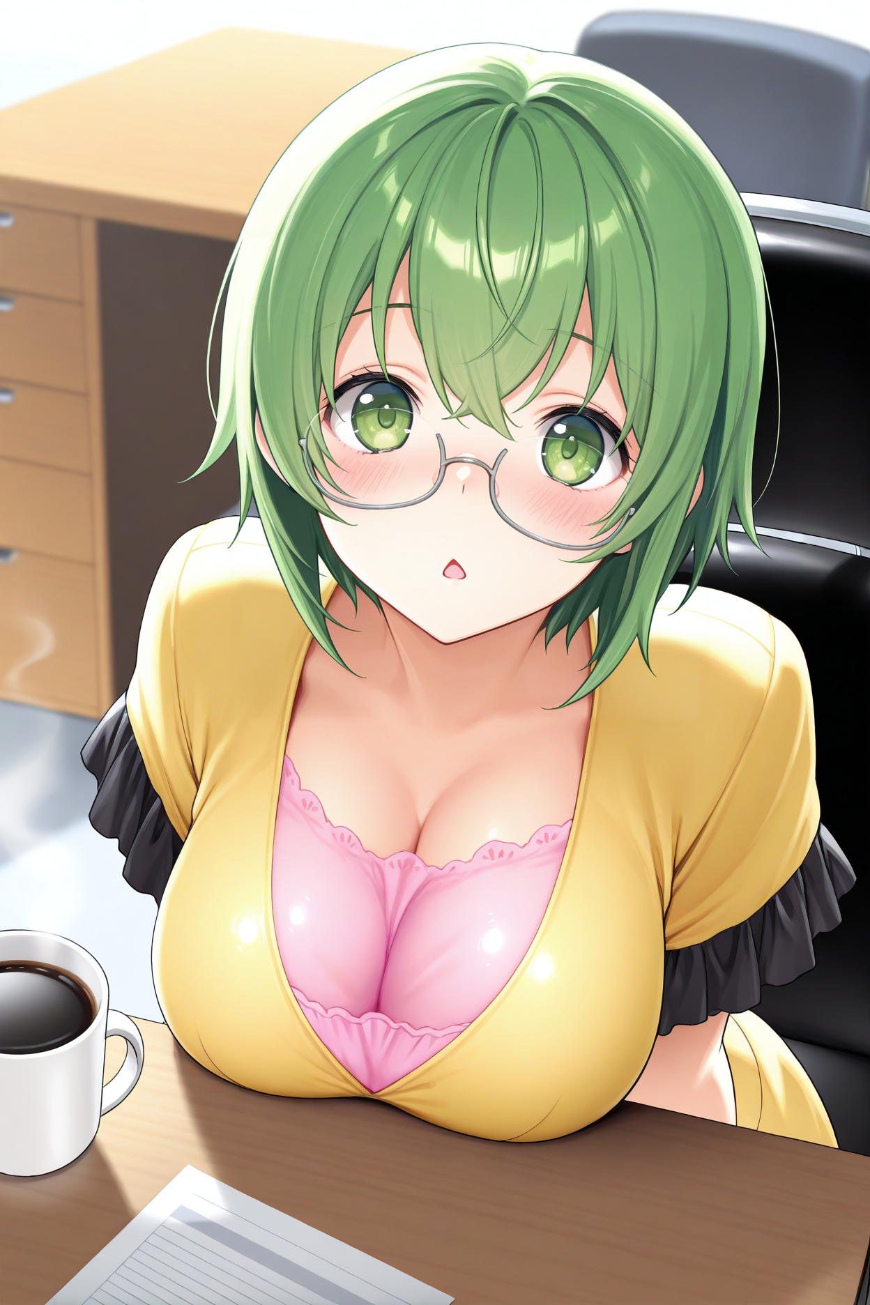 트리거 단어는 "ism4ya"이며, "녹색 머리, 단발, 녹색 눈"이 필요합니다.