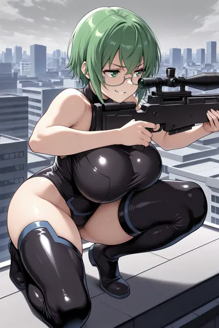 IS 바디수트를 위해 "안경, 언더림 안경, 터틀넥, 검은 레오파드, 검은 바디수트, 소매 없음, 검은 허벅지 스타킹, 허벅지 부츠"를 추가하세요.