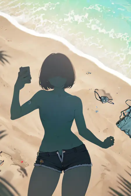其他有用的提示词包括:“手持智能手机,衣物已脱下,...”