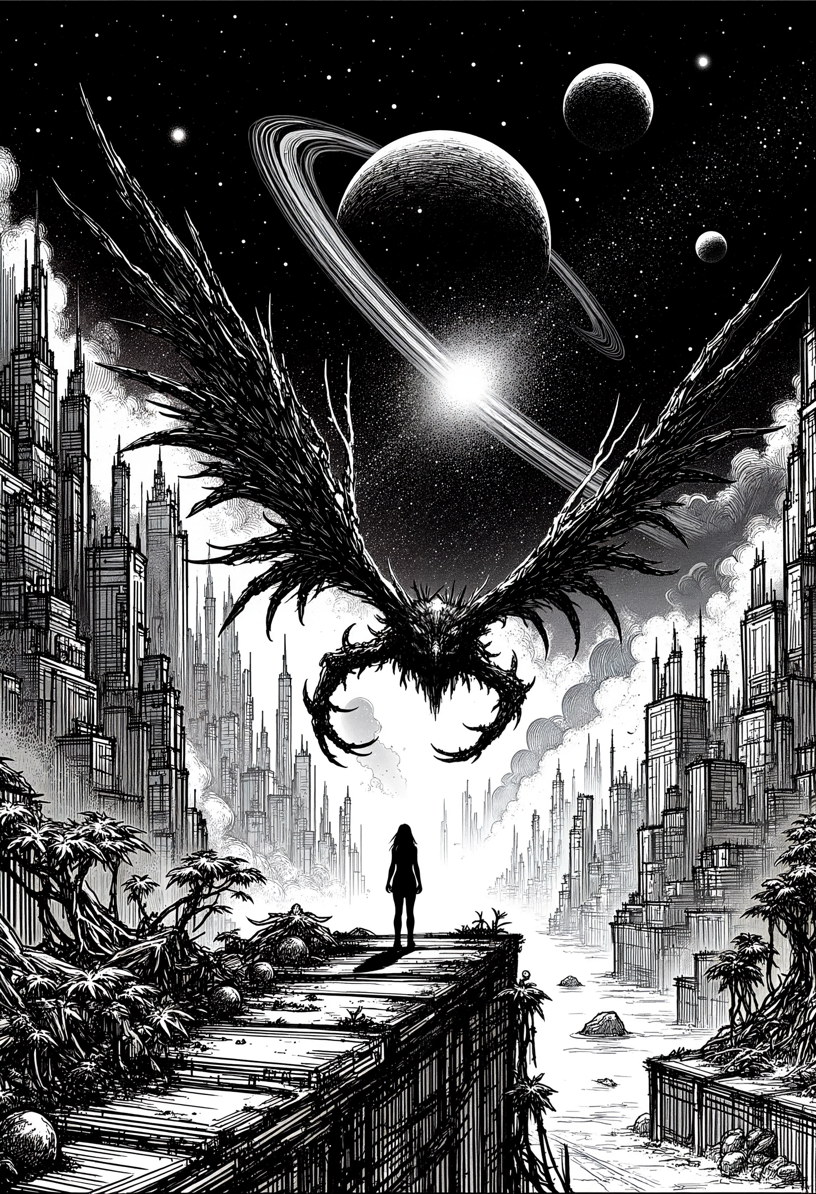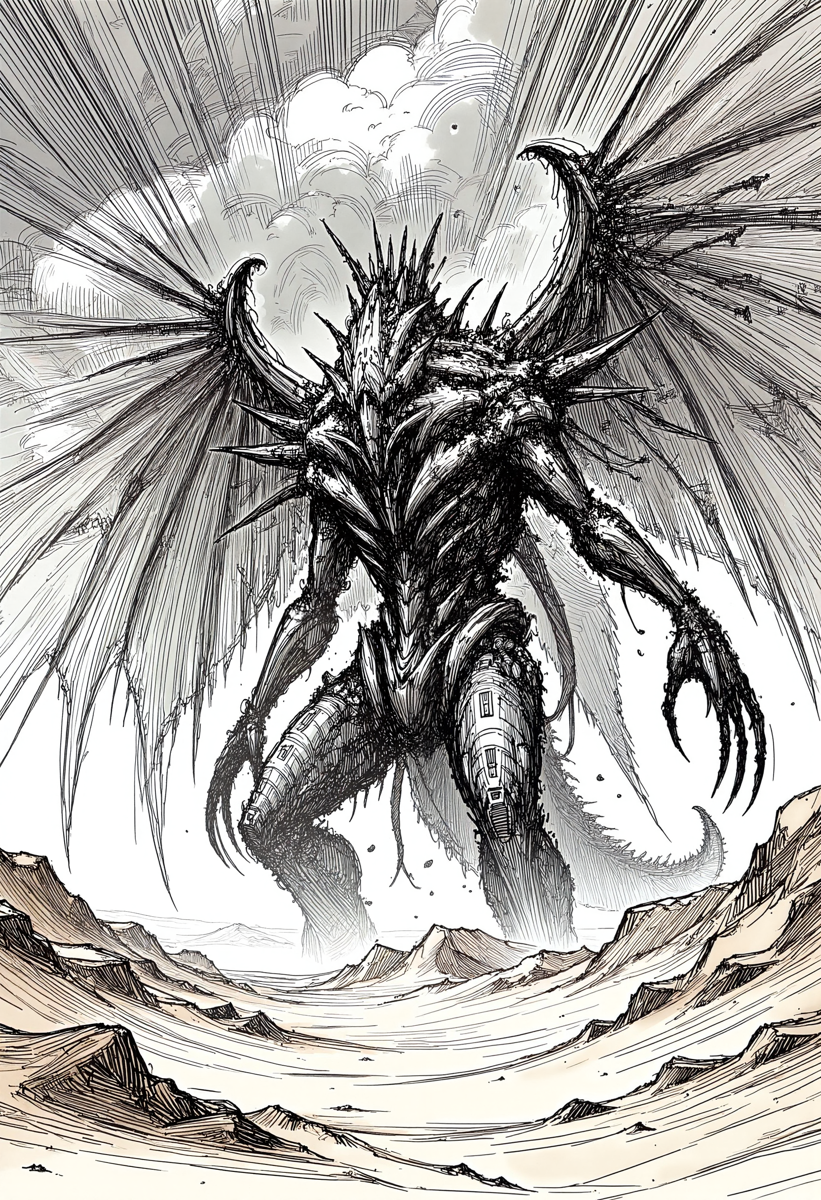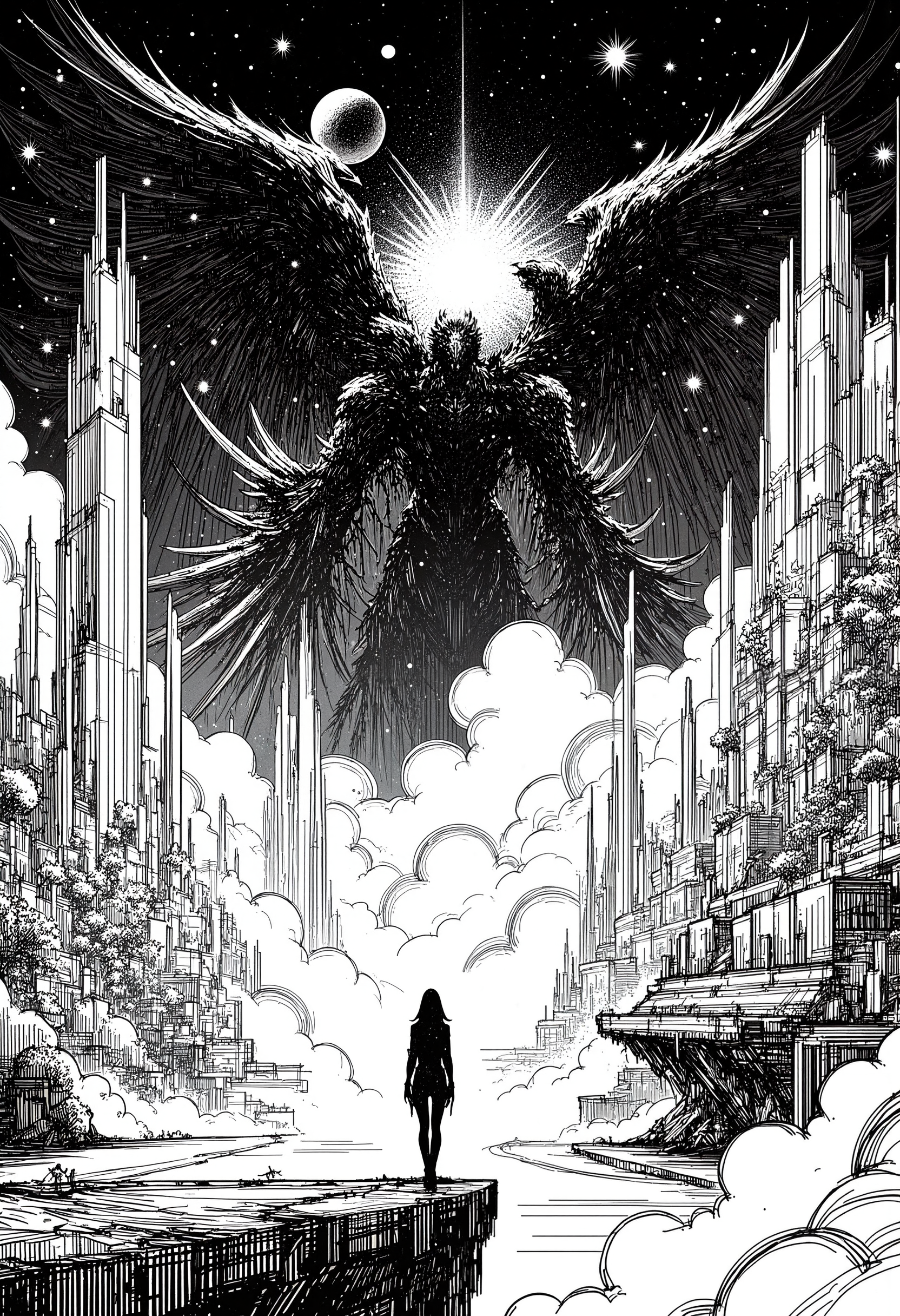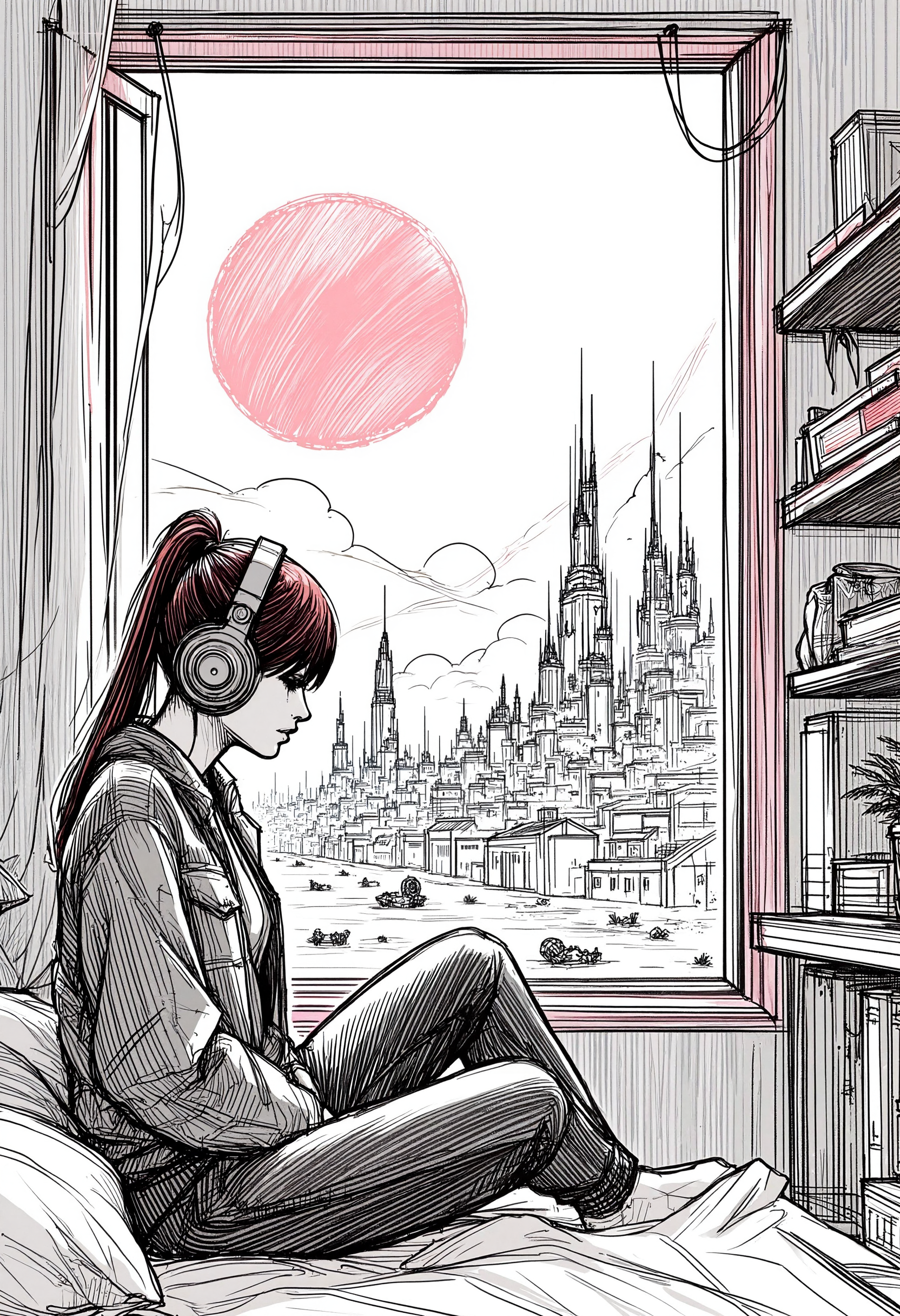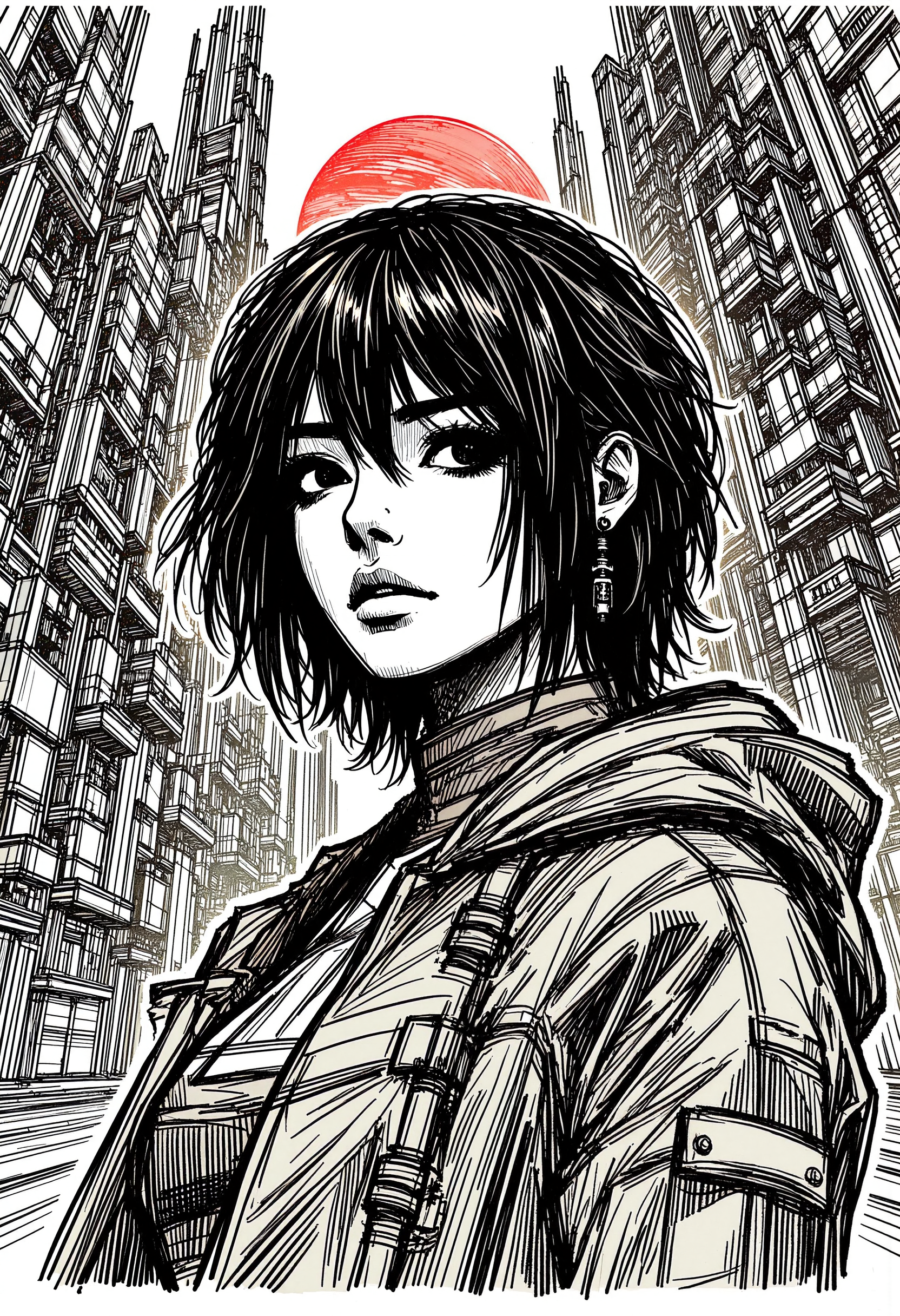 トリガー単語は必要ありませんが、「粗いスケッチ」、「モノクローム/彩度低減」、「乱雑な線画」、「フラットカラー」、および「Sci-fi」というキーワードは非常に役立ちます。