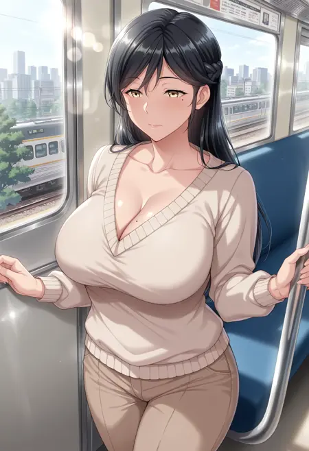 트리거 단어: c-kousaka, 성숙한 여성, 검은 머리, 노란 눈, 땋은 머리, 긴 머리, 점,