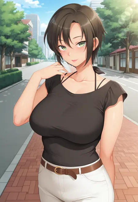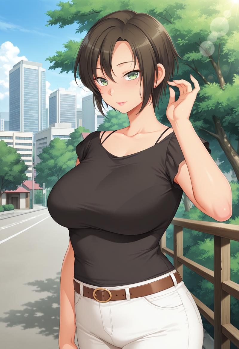 트리거 단어: c-sasahara, 단발, 갈색 머리, 초록색 눈, 성숙한 여성,