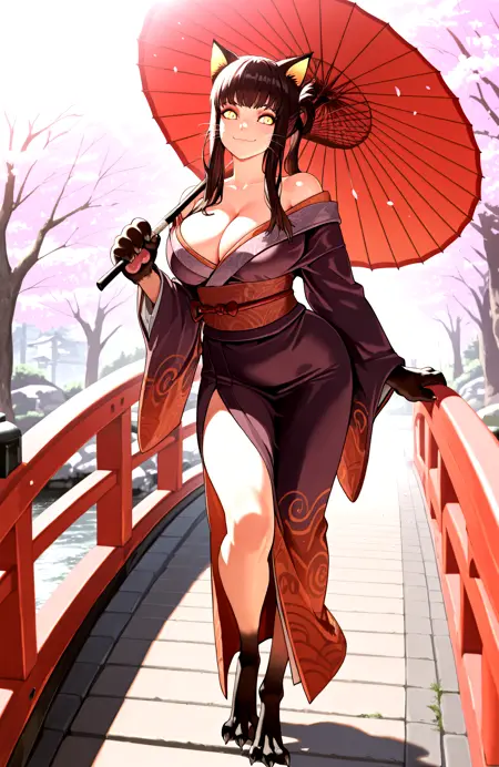 표준적인 외모를 위한 기본 프롬프트: 1girl, lora:Kasha_Nioh2_V1:0.7, glowing_eyes, red_eyes, japanese_clothes, whiskers, slit_pupils, cat_tail, cleavage, kashanioh