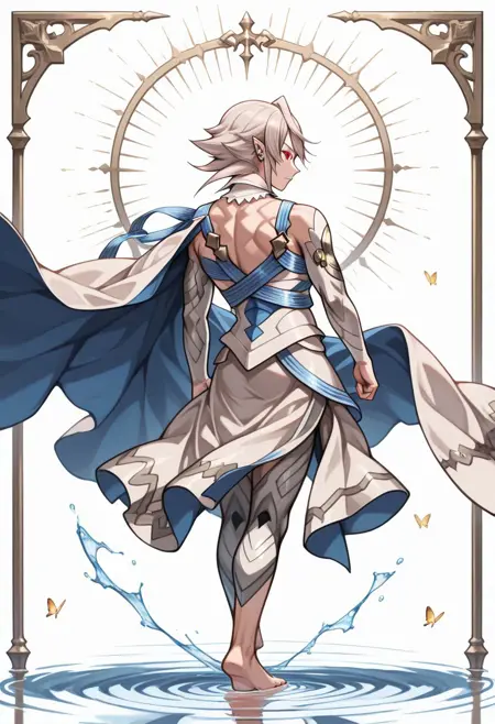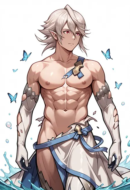 杰作,最佳质量,男性焦点,单人,1boy,全身,全身肖像,完美面容,白发,发丝,尖耳,红眼,水效果,元素能量,气泡,赤脚,胸肌,肌肉发达,腹肌,肌肉男性,corrin,adrift,尖耳,1boy,红眼,男性焦点,单人,注视观众,斗篷,微笑,跨性别装扮,手套,灰发,分离袖子,发丝遮住眼睛