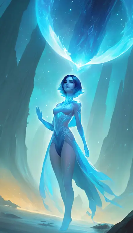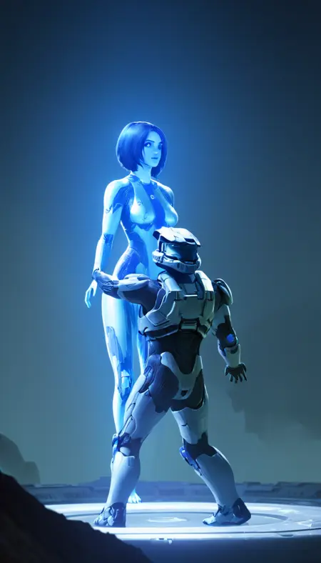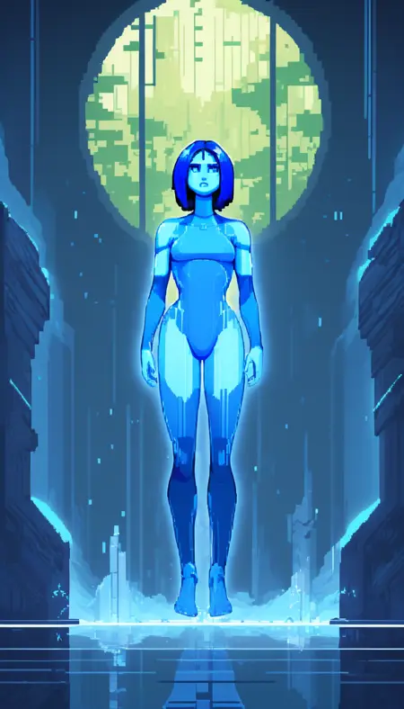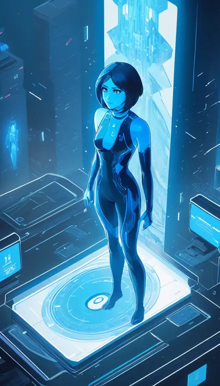 Cortana,来自第一人称射击游戏《光环》(由Bungie开发)的AI角色,作为SDXL 1.0的LoRA。