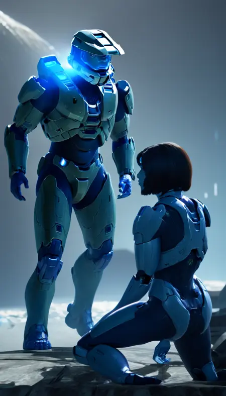 触发词为“Cortana”。你不需要,但也可以添加“Hologram”、“AI”和“Halo”来进一步增强该角色的某些特征。